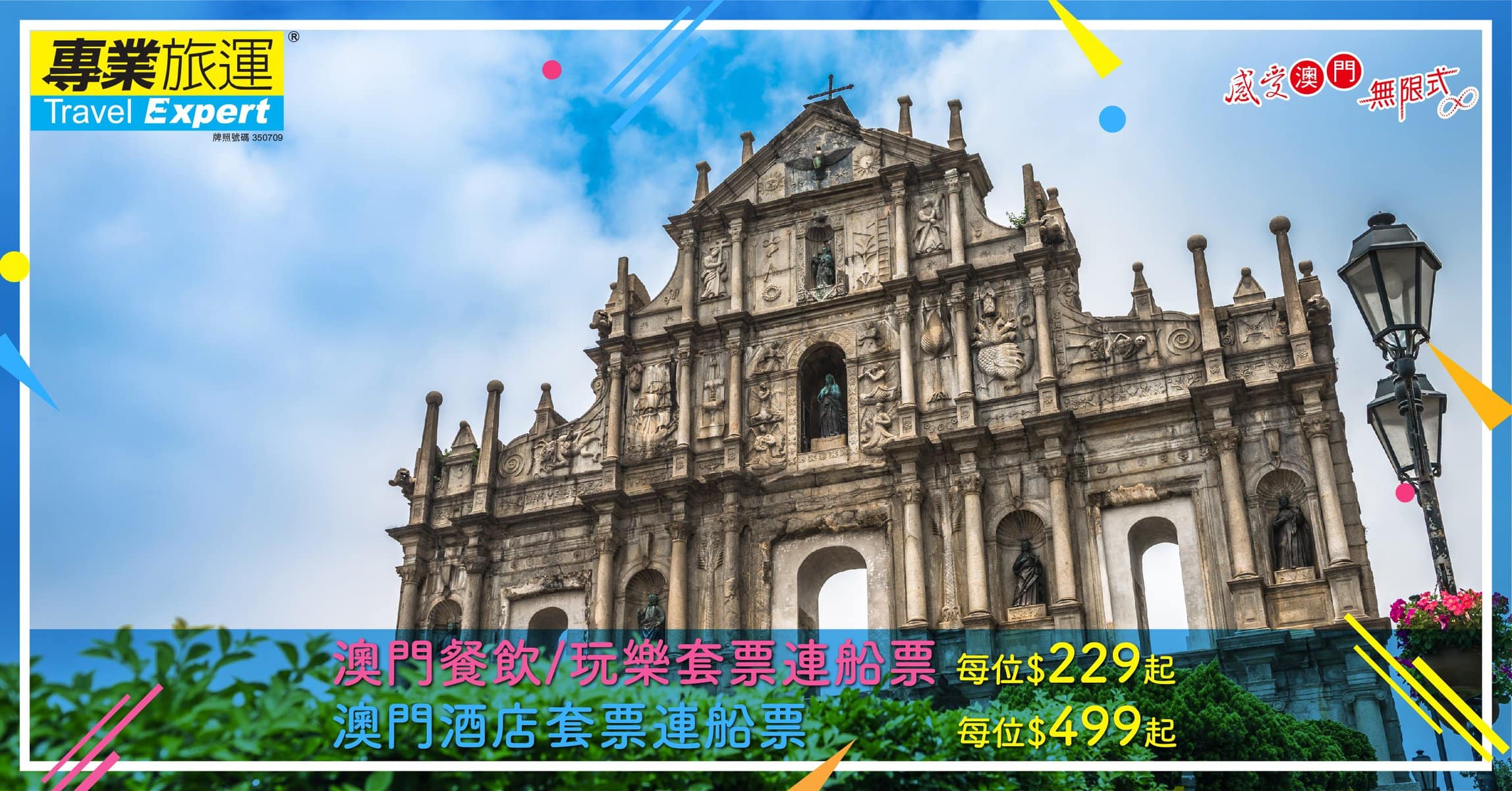 澳門大激賞!三大著數!超值澳門來回船票套票!分行限定!金光飛航來回香港至澳門船票連餐飲/娛樂/1晚酒店低至$229起!– 專業旅運 (優惠至3月17日)