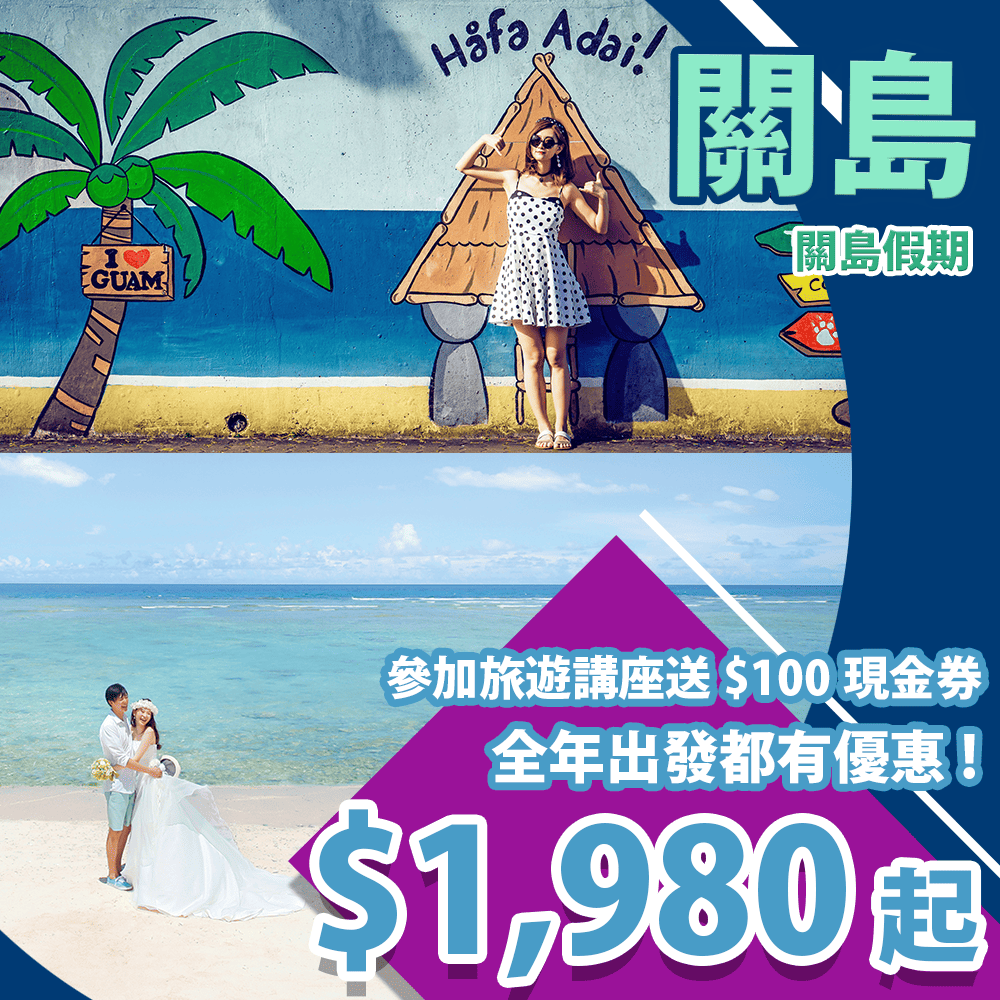 海外結婚勝地!直飛關島全年都有優惠!香港直飛關島來回只需$1,980起!參加旅遊講座送$100現金券,book酒店/自選活動/自駕遊租車都用得 – 關島假期