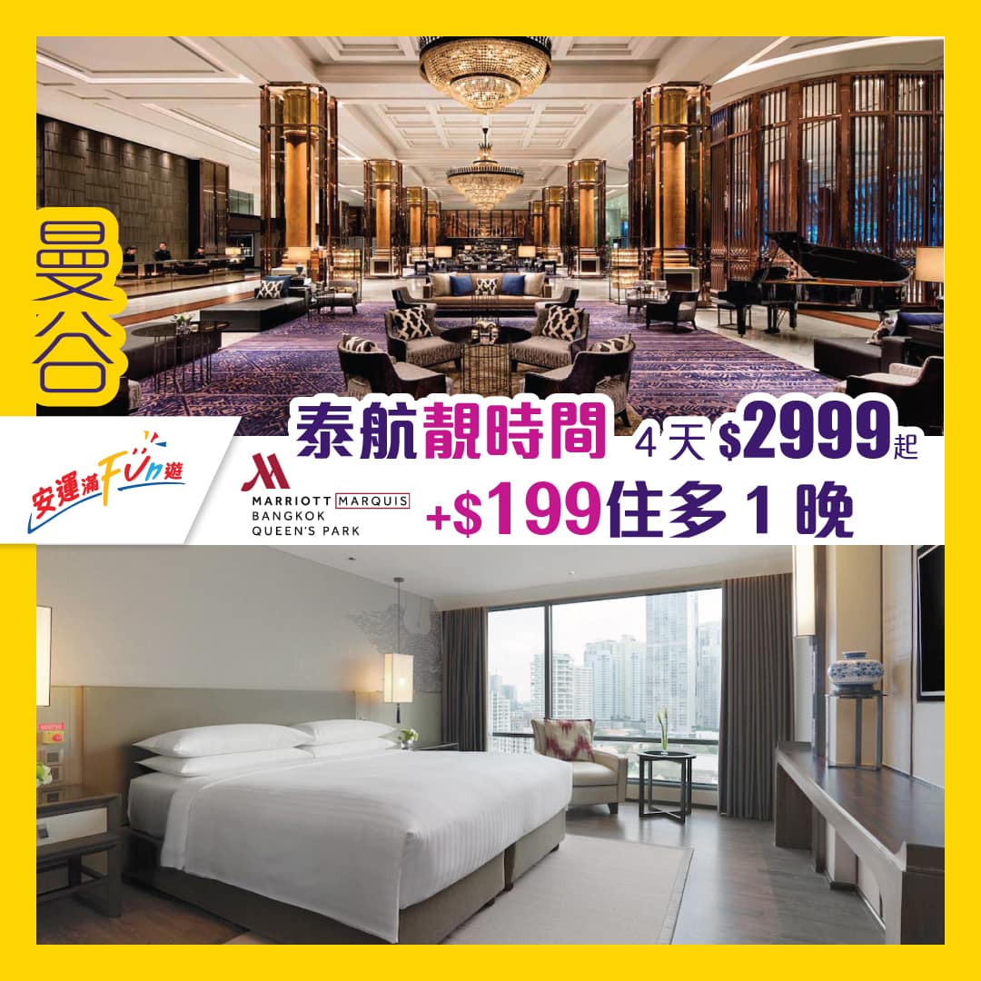 係時候去泰國relax! Bangkok Marriott Marquis Queen’s Park 有限時優惠,每位加$199住多1晚!泰航來回曼谷機票+3晚酒店住宿連早餐,每人只需$2,999起!每房多包2張曼谷版八達通 Rabbit Card! – 安運滿Fun遊 (優惠至3月29日)
