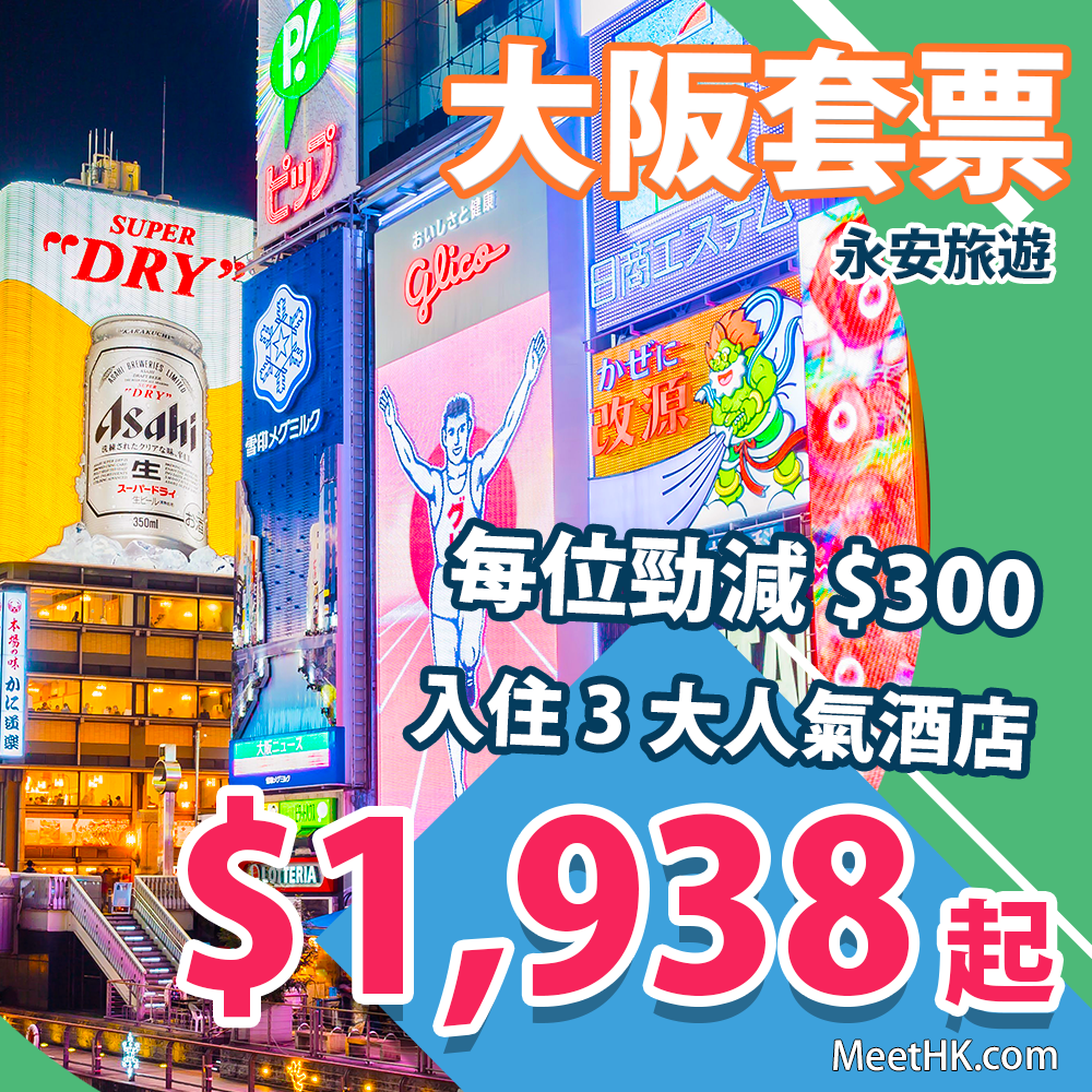 限時優惠!大阪套票推介!每位減$300!入住3大人氣酒店!大阪來回機票連2晚人氣酒店住宿自由行套票每人$1,938起 – 永安旅遊 (優惠至3月13日4pm)