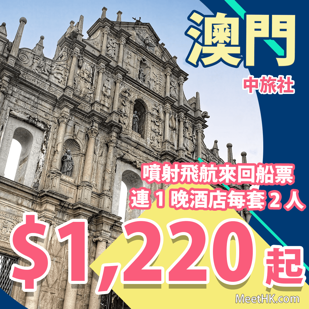 中旅社”澳門大激賞”又嚟啦!2日1夜酒店連噴射飛航船飛套票每套2人入住只需$1,220起