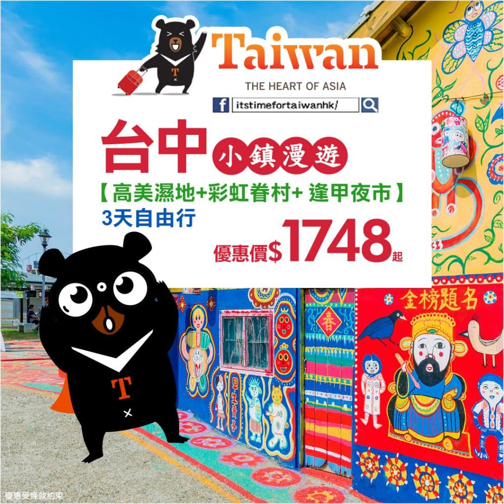 抵玩台中套票!包高美濕地.彩虹眷村.逢甲夜市一天遊!台中機票連2晚酒店套票每人只需$1,748起 – 永安旅遊