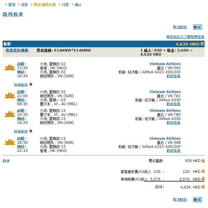 抵呀!6月21日前出發!香港往返悉尼、墨爾本只需$930 – 越南航空 (優惠至6月21日)
