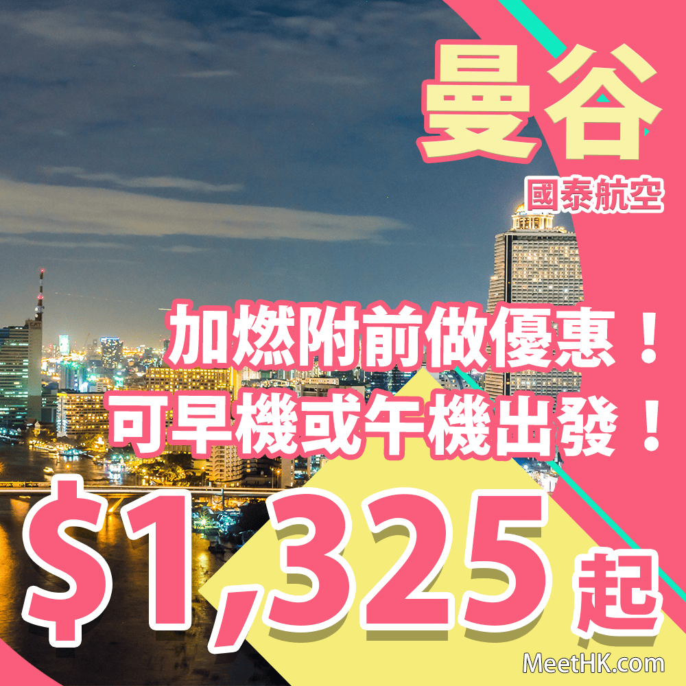 香港往返曼谷只需$1,325起,連稅$1,985起