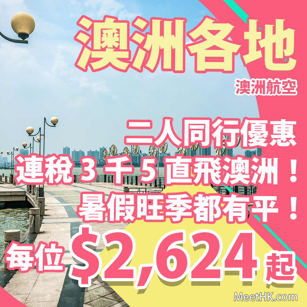 抵!澳航同行優惠!孖住玩轉澳洲各地!連稅3千5直飛!暑假出發都有平!8月31日前出發!香港往返悉尼、墨爾本、布里斯班二人同行每人只需$2,624起 – 澳洲航空 (優惠至3月31日)