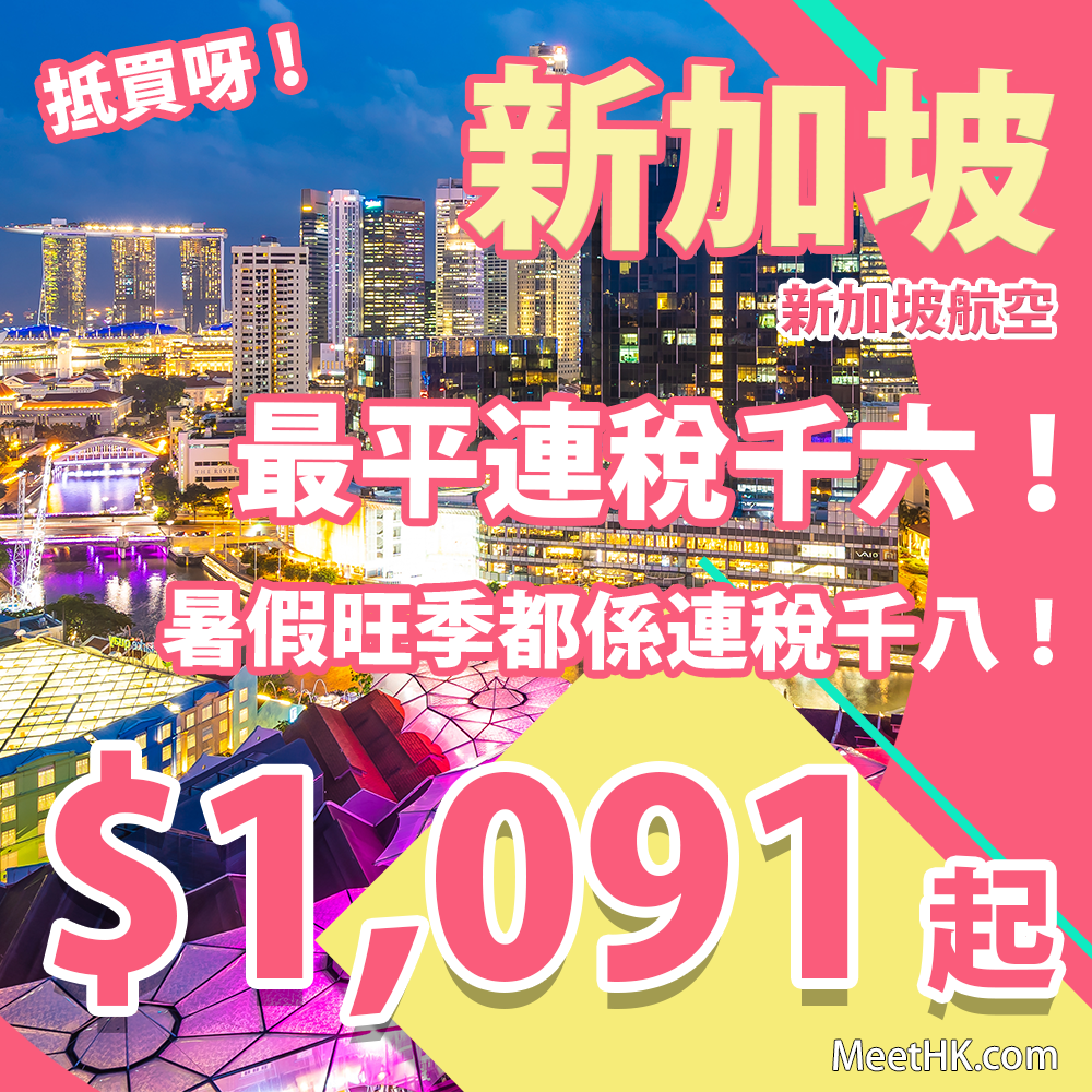 香港往返新加坡只需$1,091起,連稅$1,680起