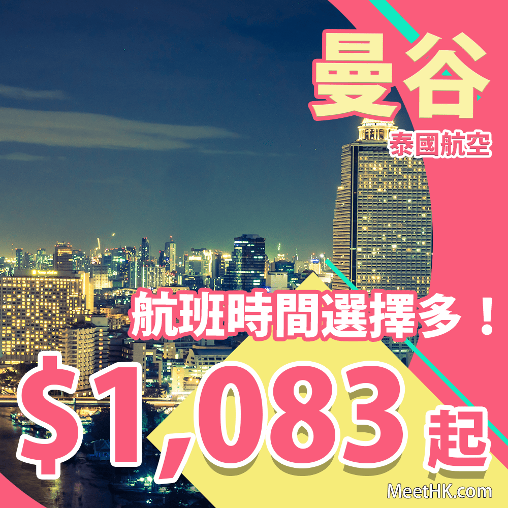 香港往返曼谷只需$1,083起,連稅$1,843起
