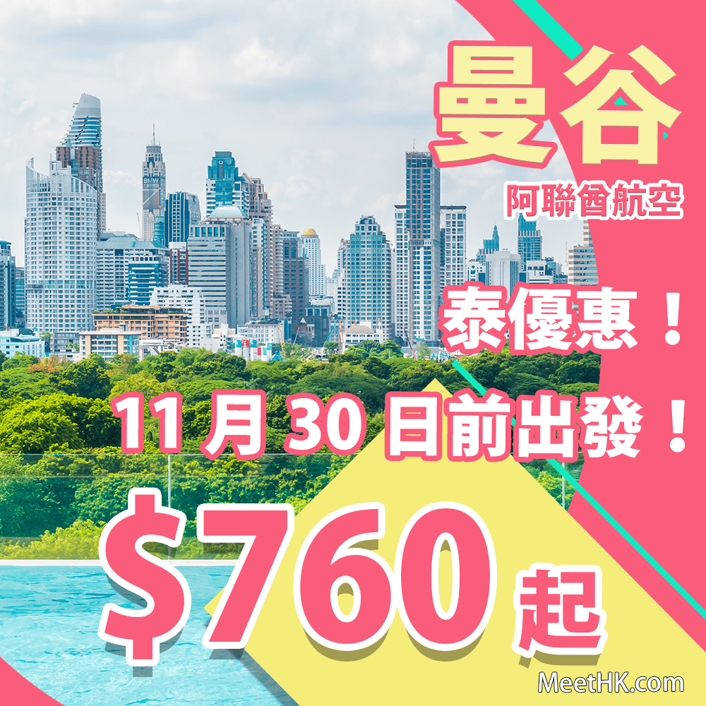 泰優惠!連稅千四蚊!坐高質阿聯酋A380飛曼谷!11月30日前出發!香港往返曼谷只需$760起 – 阿聯酋航空 (優惠至4月14日)