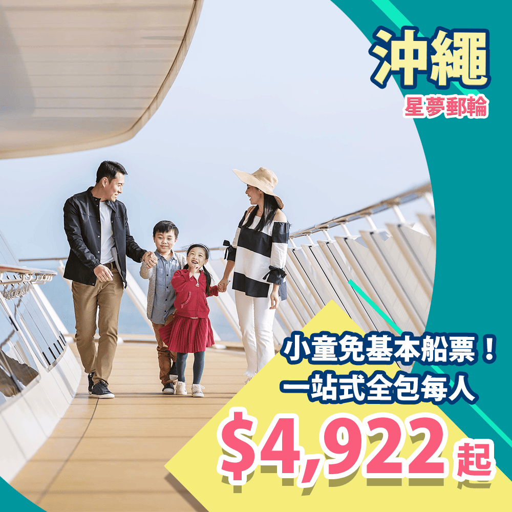 世界夢號6天5晚沖繩那霸+宮古島郵輪之旅2大1小一站式全包每人只需$4,922起