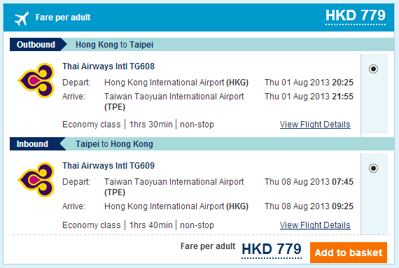 9月30日前出發!暑假旺季出發適用!香港往返台北只需$779 – 泰國航空 (優惠至9月30日)