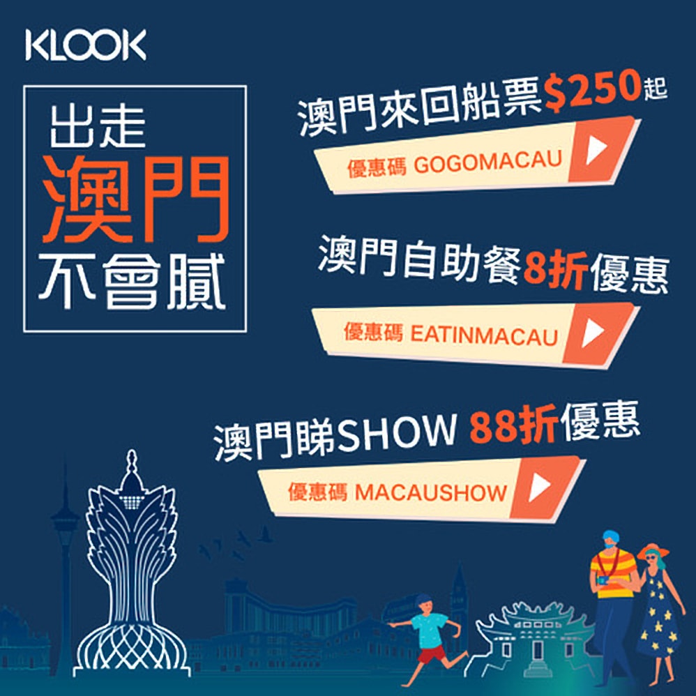 詳情:https://www.klook.com/zh-HK/promo/macaupromotion2019/