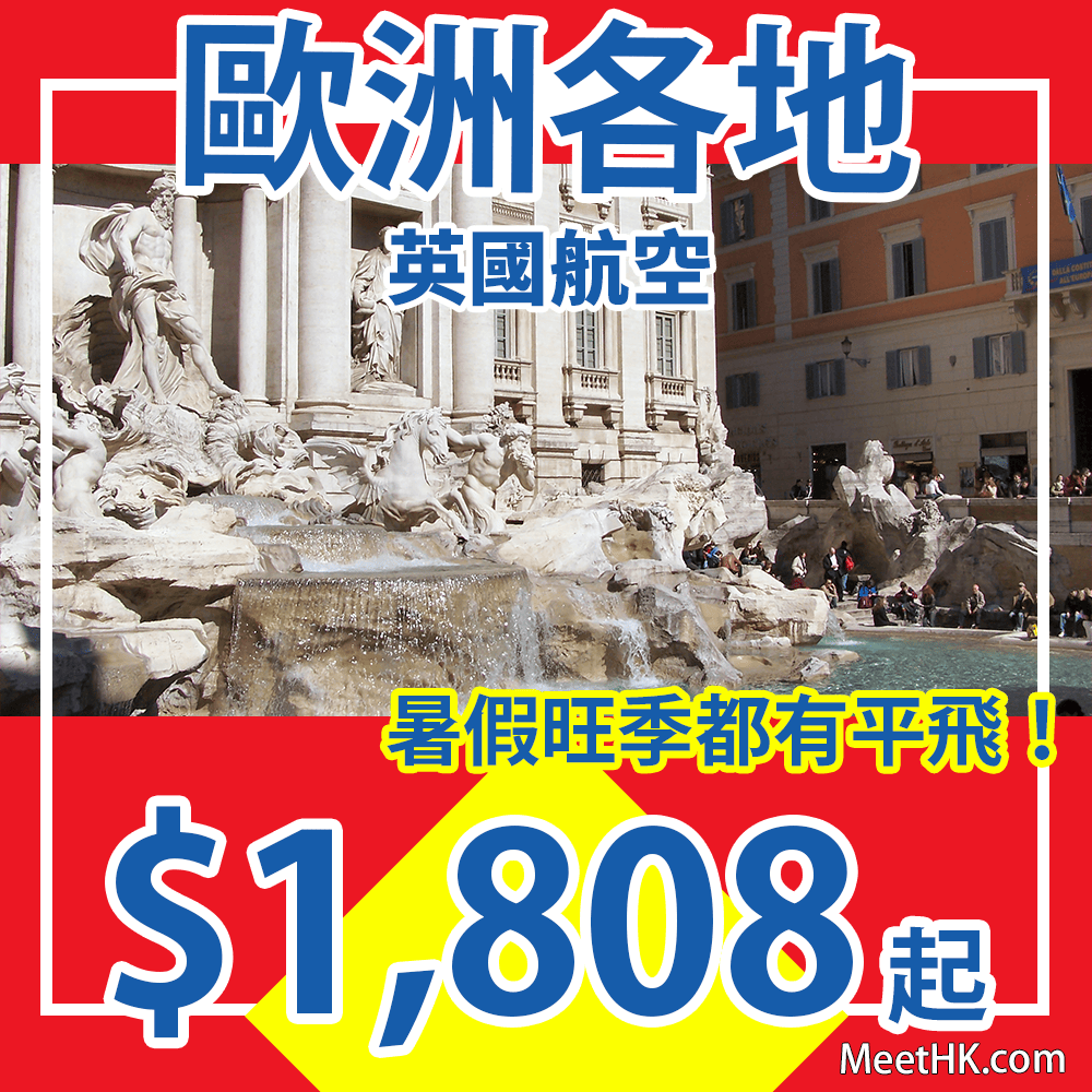 嘩!再有英航飛歐洲超平飛!最平連稅3千2咋!可Open Jaw!暑假都有平!賣到明年3月!香港往返歐洲各地只需$1,808起 – 英國航空 (優惠至4月18日)