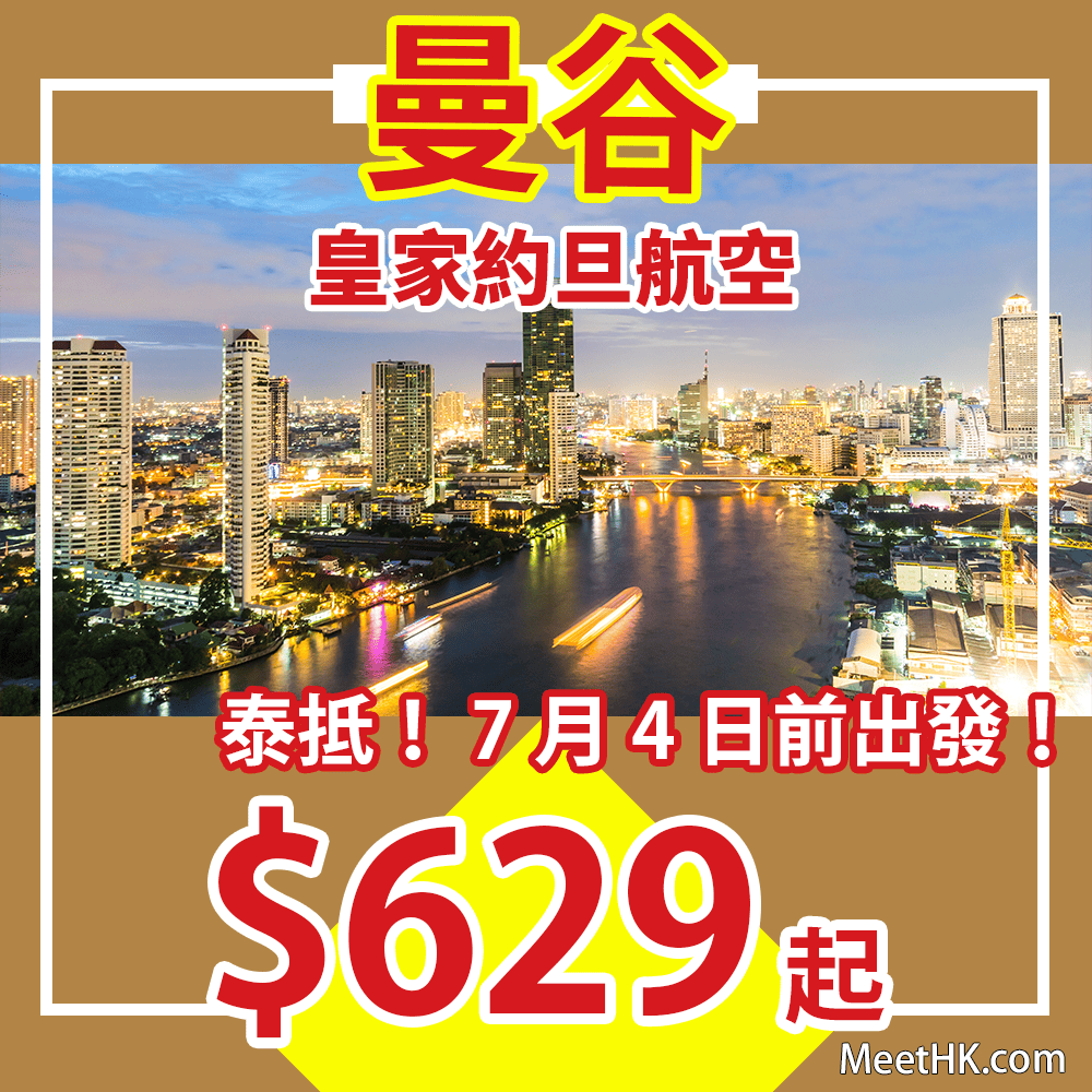 泰抵!飛曼谷連稅千二蚊!包30kg行李!提早投奔初夏!7月4日前出發!香港往返曼谷只需$629起 – 皇家約旦航空 (優惠至5月2日)