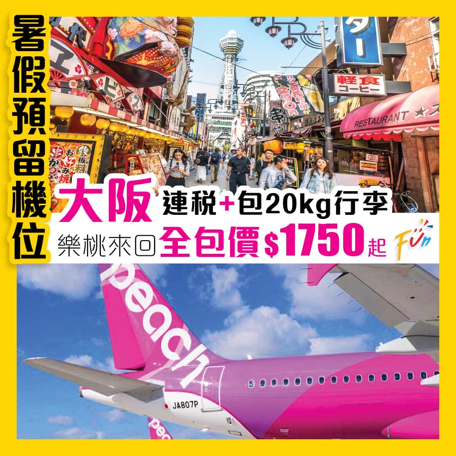 樂桃航空飛大阪來回全包價$1,750起,連稅+包20kg行李!賣到去10月尾出發添!