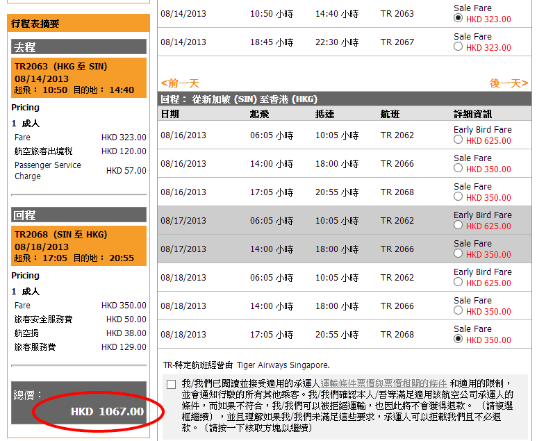 7月至9月暑假旺季出發!香港往返新加坡來回連稅$1,181 – 虎航 Tiger Airways (優惠至4月22日)
