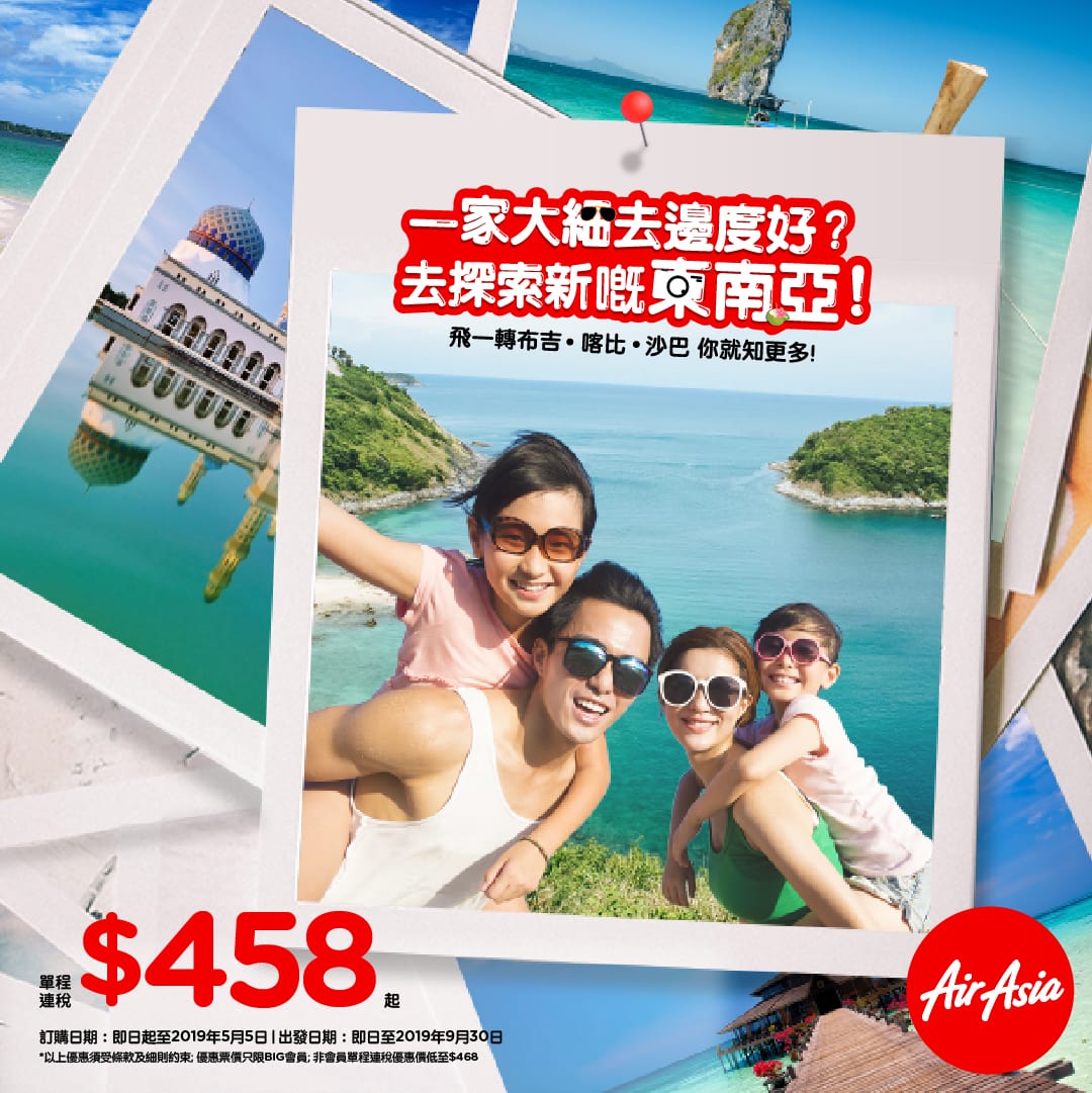 抵玩!全家出發!一家大細hea遊東南亞!香港飛吉隆坡來回連稅$776起、沙巴(亞庇)$788起、喀比$826起、清邁$891起、布吉$1,031起、曼谷$1,051起 – AirAsia (優惠至5月5日)