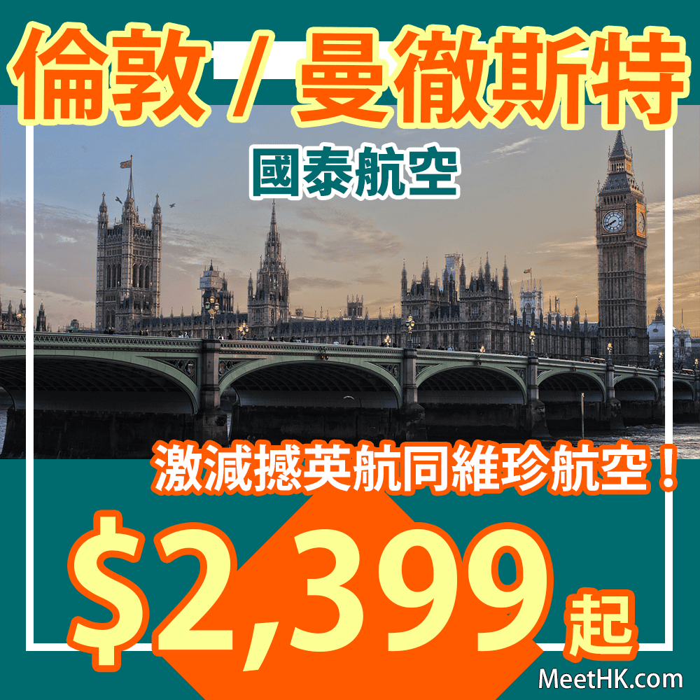 香港直航往返倫敦、曼徹斯特只需$2,399起