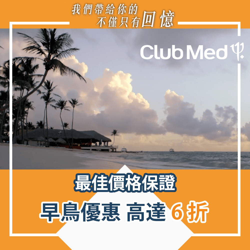 Club Med推出左夏季早鳥優惠,一價全包住宿套票低至6折,愈早訂愈著數,保證最優惠價格!