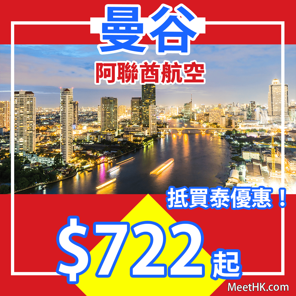 泰抵買優惠!連稅千四蚊!坐高質阿聯酋A380飛曼谷!11月30日前出發!香港往返曼谷只需$722起 – 阿聯酋航空 (優惠至5月23日)