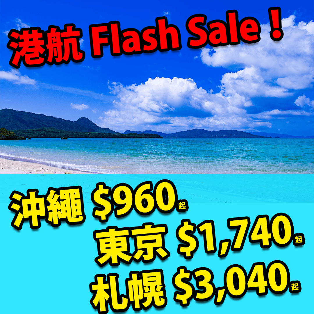 港航Flash Sale!香港往返沖繩只需$960起、東京$1,740起、札幌$3,040起,Business Class飛曼谷$2,300起 – 香港航空 (優惠至5月8日)