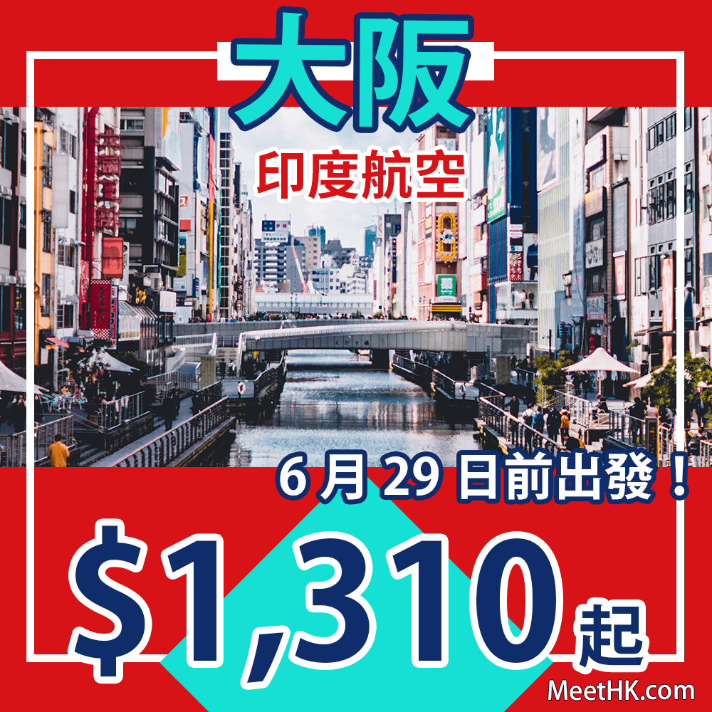 平飛大阪!早機出發!30kg行李!6月29日前出發!香港往返大阪只需$1,310起 – 印度航空 (優惠至5月31日)