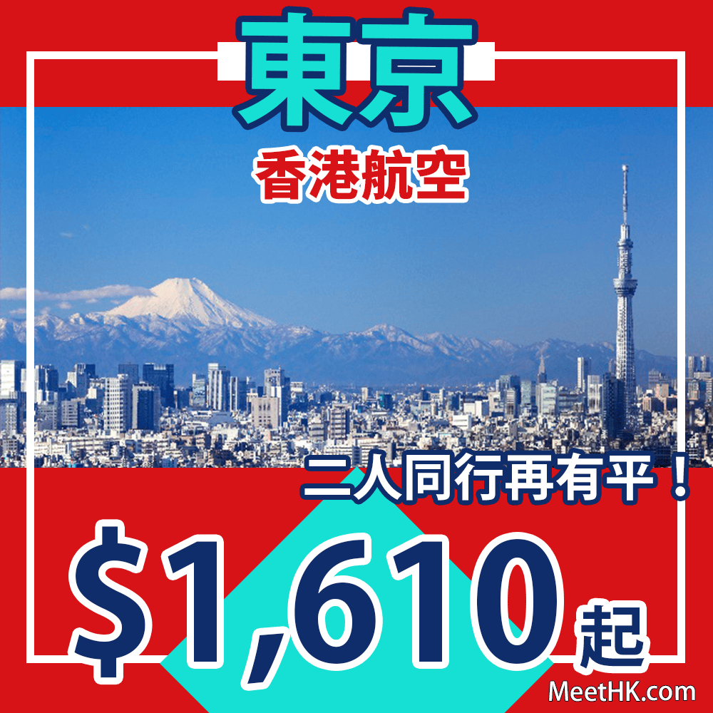 香港往返東京二人同行每人只需$1,610起,連稅$2,319起