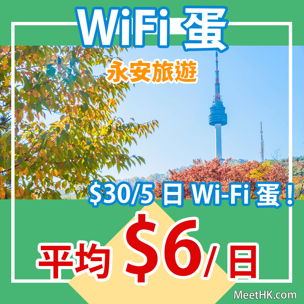 快閃優惠!$6!$6!$6 Wi-Fi蛋!限首4,000位!即拎超抵價優惠碼!高CP版日韓台泰4G無限數據Wi-Fi蛋$30/5日!– 永安旅遊 (優惠至5月24日)