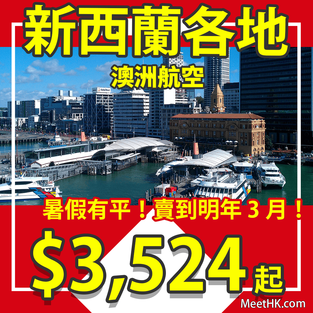 https://www.cheaptickets.hk (每單減$100折扣代碼:MEETHKINT2019,需透過此連結預訂,連稅奧克蘭$3,929起,基督城$4,001起,威靈頓$4,013起,皇后鎮$4,561起)