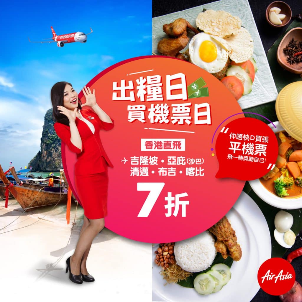又到快出糧嘅時候啦!買平飛去旅行獎勵自己!機票低至7折!香港飛沙巴(亞庇)來回連稅$808起、吉隆坡$824起、喀比$841起、布吉$982起、清邁$1,062起、曼谷$1,146起 – AirAsia (優惠至6月2日)