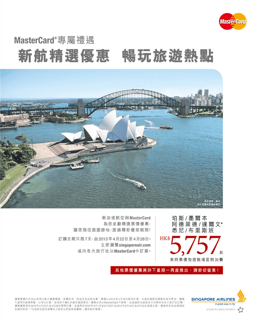 新航同MasterCard連續4個星期推出唔同地方既機票優惠,對上兩個星期推出左馬爾代夫同東南亞既優惠
