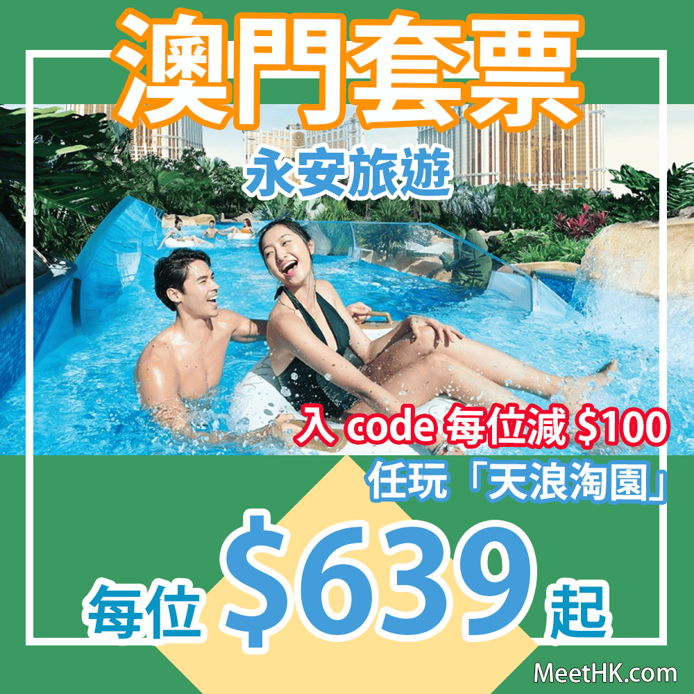 暢玩「天浪淘園」!澳門套票優惠!每位減$100!限首200位!澳門2天套票(酒店連船飛)每人只需$639起,送英記餅家鳳凰卷及銀河精選美食換領券 – 永安旅遊 (優惠至6月17日)