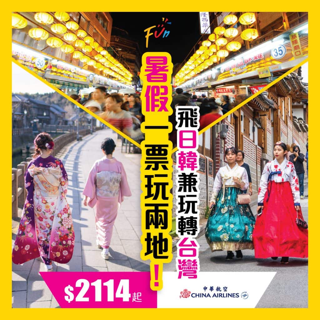 嘩!一票玩兩地!飛日韓兼玩轉台灣!暑假旺季出發!華航香港往返日韓只需$2,114起,其中一程可中停台灣!– Funfun.travel (優惠至6月14日)