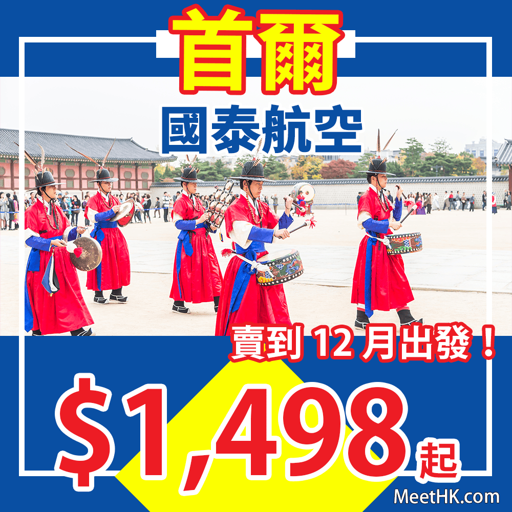 國泰首爾平飛!賣到12月出發!連稅二千二!30kg行李!可以揀早機/凌晨機出發!香港往返首爾只需$1,498起 – 國泰航空 (優惠至6月30日)