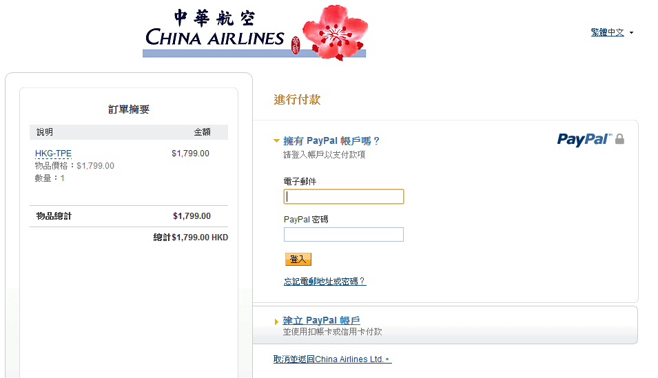 以PayPal購買中華航空机票即減HK$156 (優惠至9月30日) – 中華航空