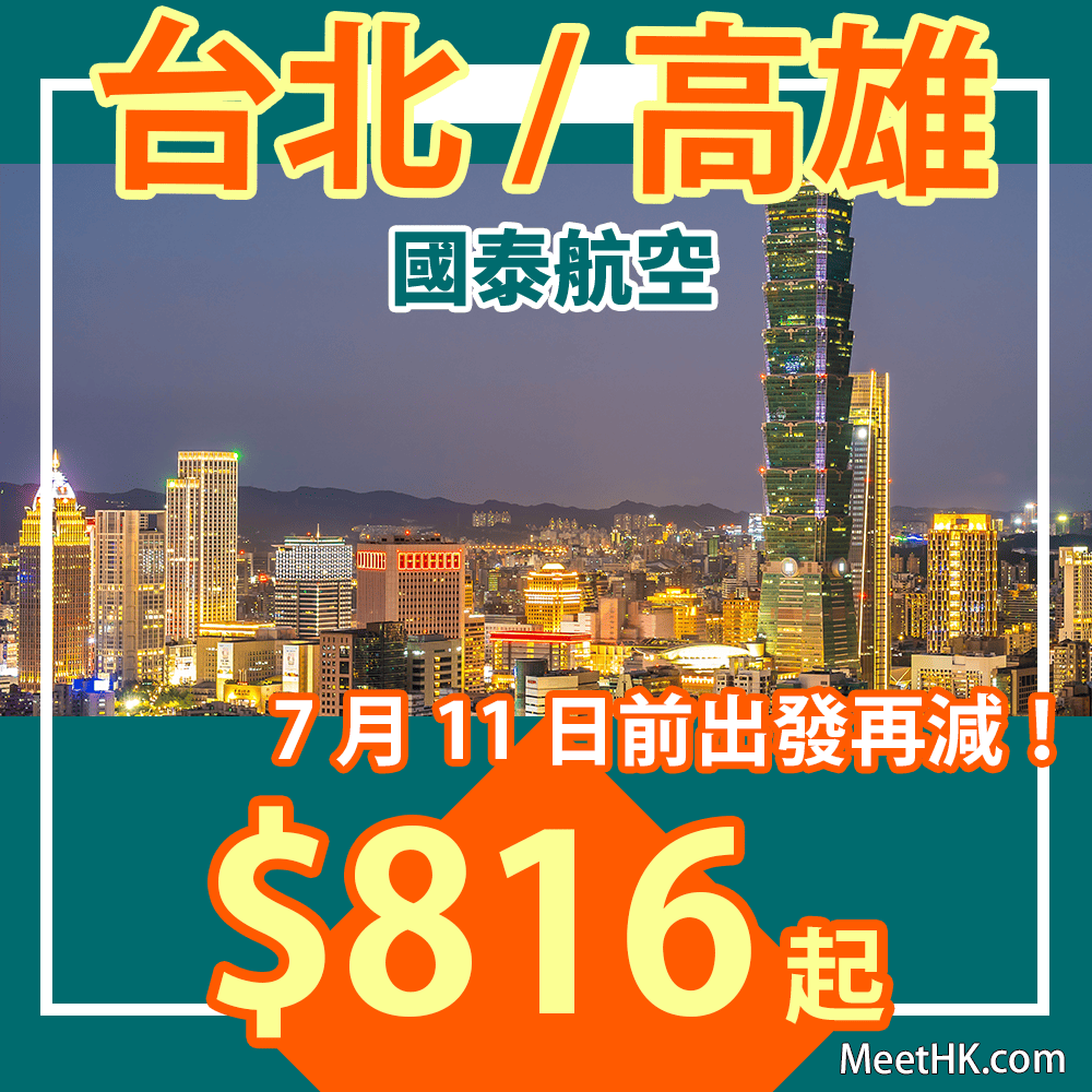 國泰飛台灣連稅千四!平左近二百!7月11日前出發!30kg行李!香港往返台北、高雄只需$816起 – 國泰航空 (優惠至6月12日)