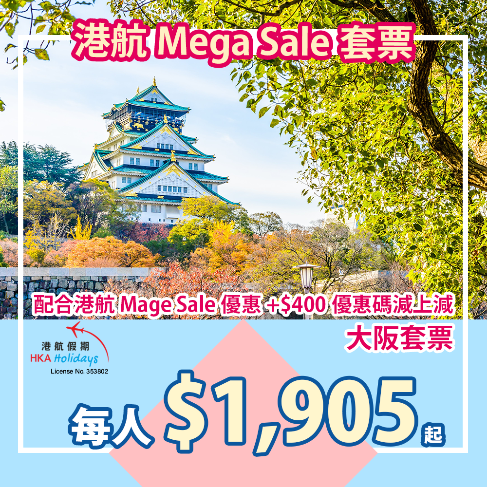 港航Mega Sale抵玩套票!日韓台泰熱門航點全部有得減!首爾3日2夜套票(機票+酒店)只需$1,498起、大阪$1,905起 – 港航假期 (優惠至6月28日)