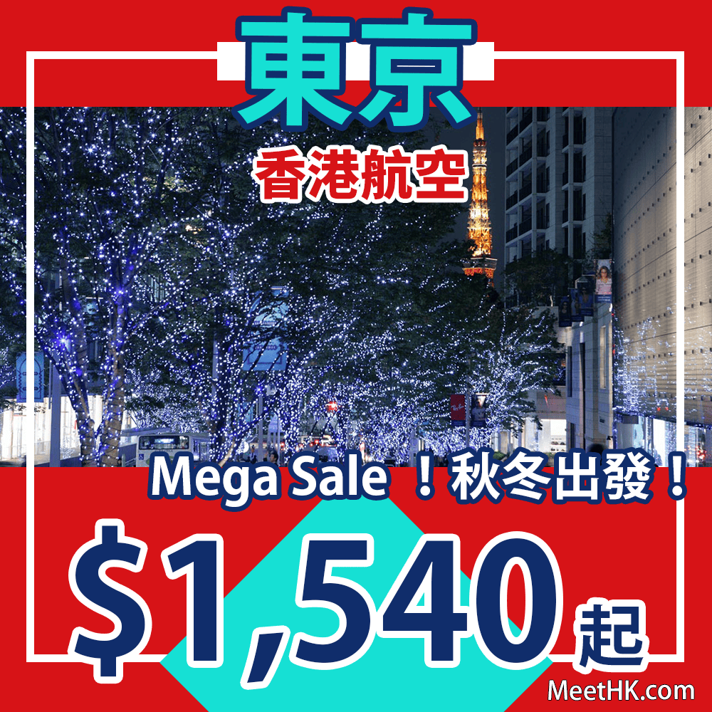 港航Mega Sale!東京連稅二千三!秋冬出發!香港往返東京只需$1,540起 – 香港航空 (優惠至6月28日)