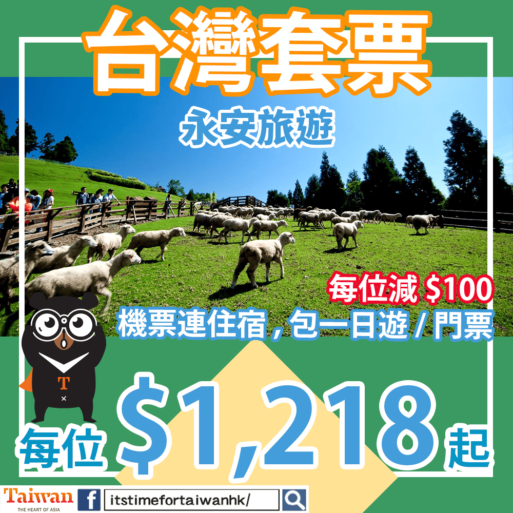 抵玩台灣套票!每位再減$100!包一日遊/樂園門票!台灣來回機票連2晚酒店套票每人只需$1,218起 – 永安旅遊 (優惠至6月28日)