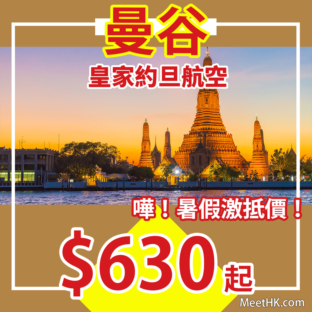 嘩!暑假超平飛曼谷!連稅千三蚊!8月份出發!香港往返曼谷只需$630起 – 皇家約旦航空 (優惠至6月18日)