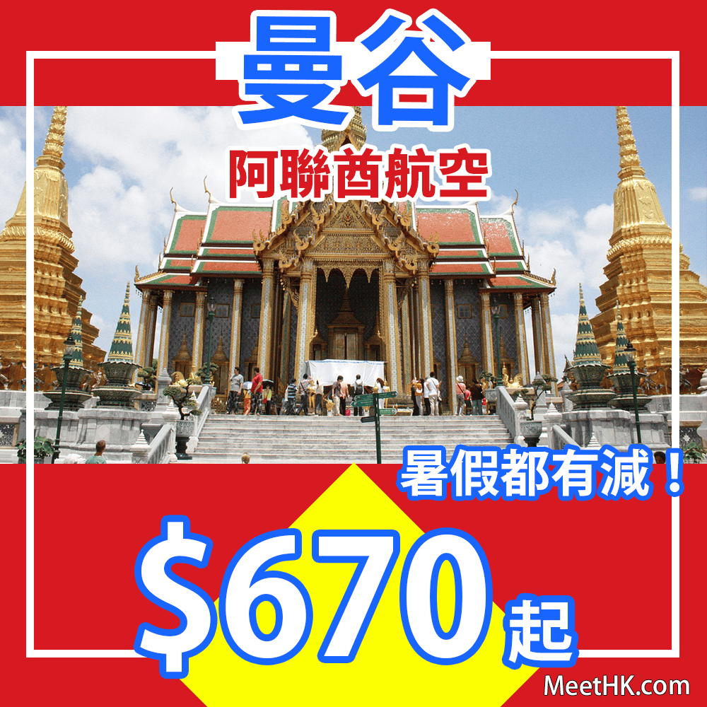 坐高質阿聯酋A380飛曼谷!連稅千四蚊!暑假都有減!香港往返曼谷只需$670起,暑假旺季$1,090起 – 阿聯酋航空 (優惠至6月25日)