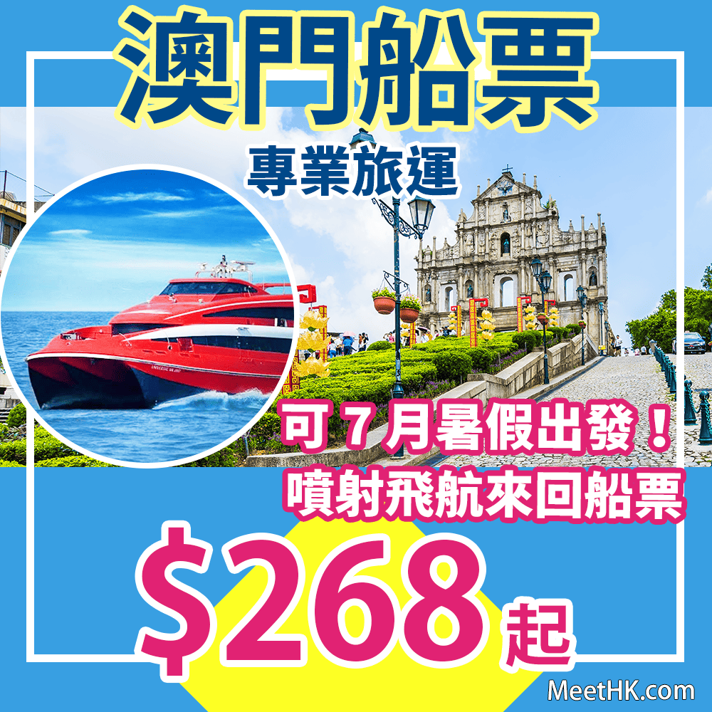 7月暑假平玩澳門!可以暑假旺季/weekend出發!噴射飛航來回香港至澳門船票只需$268起,送$10澳門當地玩樂優惠碼 – 專業旅運 (優惠至6月25日)