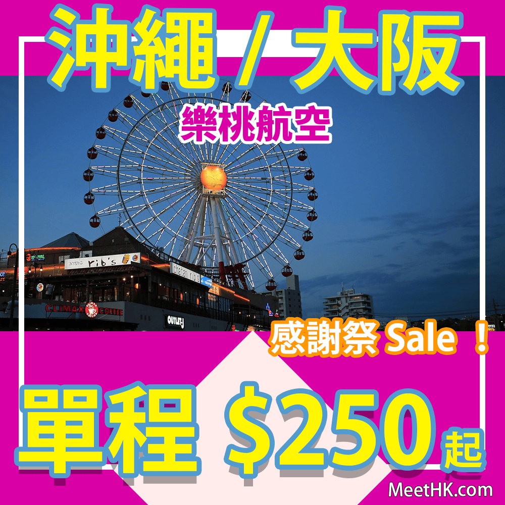 正!感謝祭Sale!單程飛沖繩/大阪$250起!來回連稅九百起!香港飛大阪/沖繩單程只需$250起 – 樂桃航空 (優惠至6月25日)