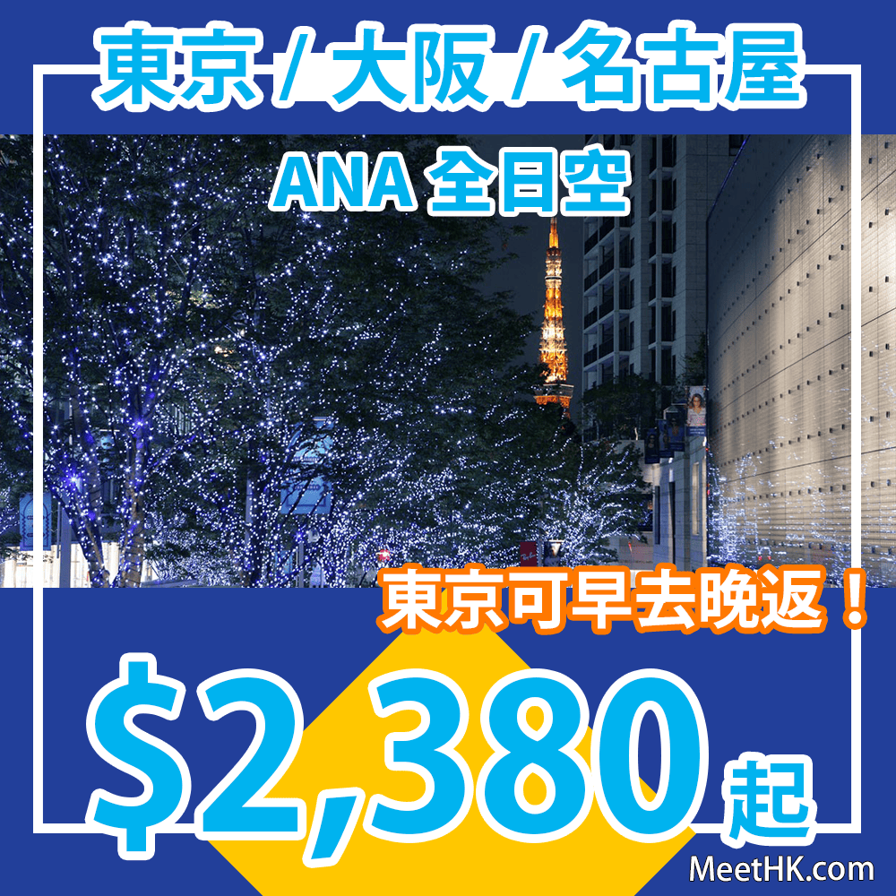 高質ANA日本優惠!限時5日!12月19日前出發!東京可早去晚返!香港往返東京、大阪、名古屋只需$2,380起 – ANA 全日空 (優惠至7月2日)