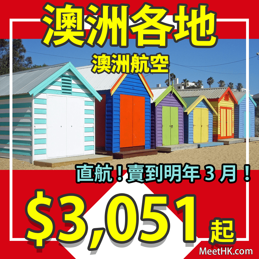 澳航澳洲優惠延長!連稅3千8起!賣到明年3月!香港直飛往返澳洲各地只需$3,051起 – 澳洲航空 (優惠至7月12日)