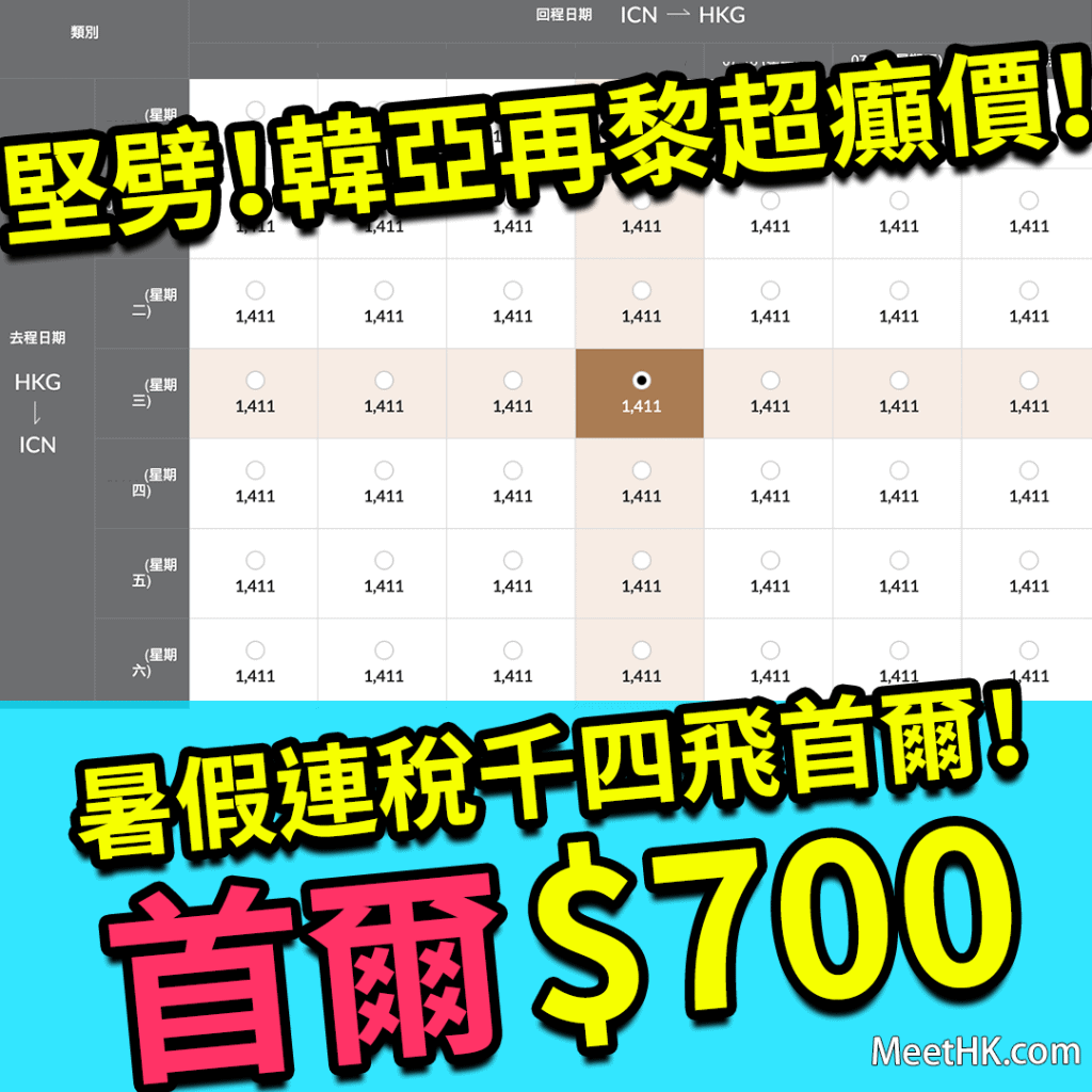 嘩!堅劈!再黎超癲價!暑假連稅千四飛首爾!韓亞限時爆減!可凌晨機去晩機返!香港往返首爾只需$700 – 韓亞航空