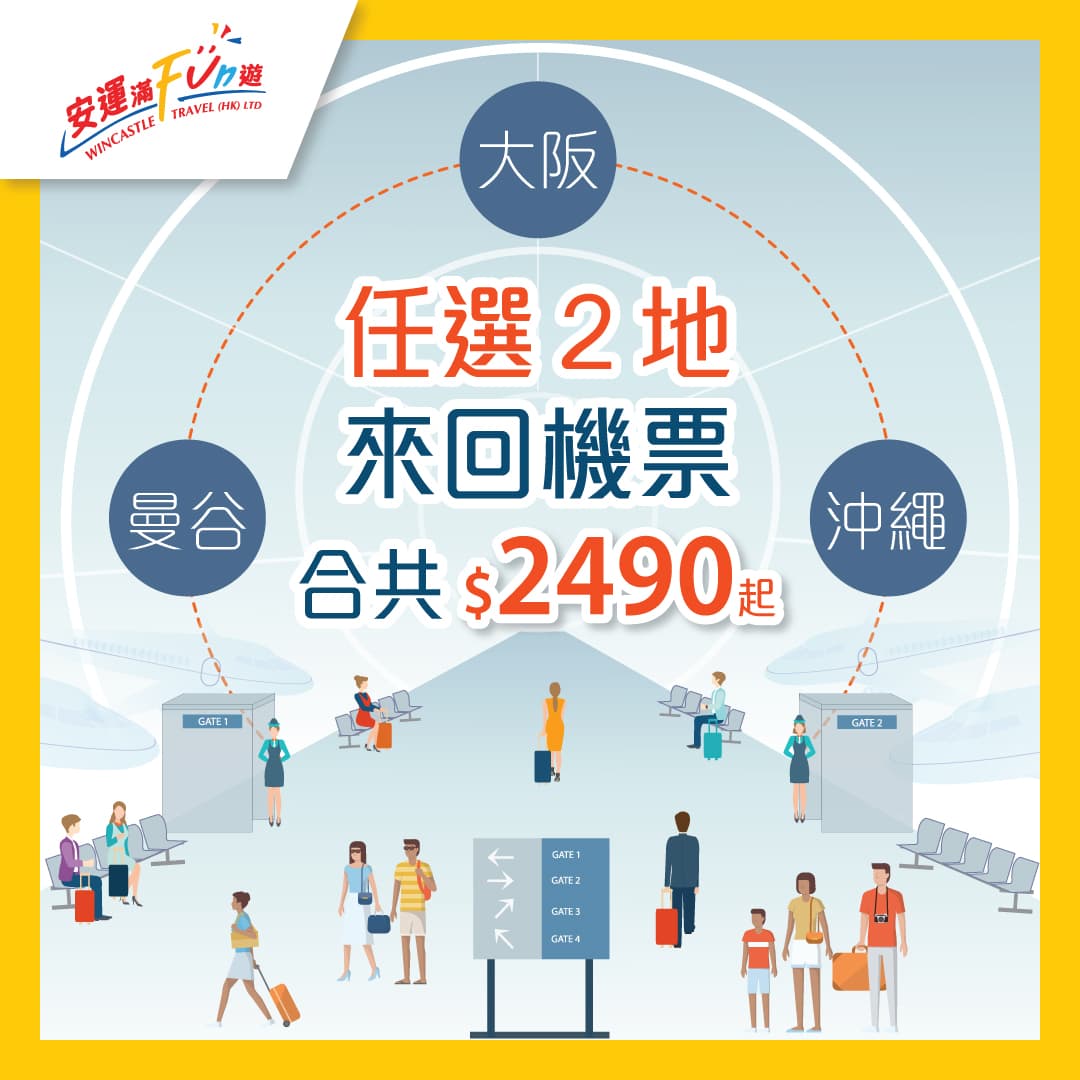 抵玩機票組合!一張機票價錢飛兩地!曼谷/大阪/沖繩三揀二,兩套來回機票$2,490 起,出發日期至12月 – 安運滿Fun遊 (優惠至7月31日)