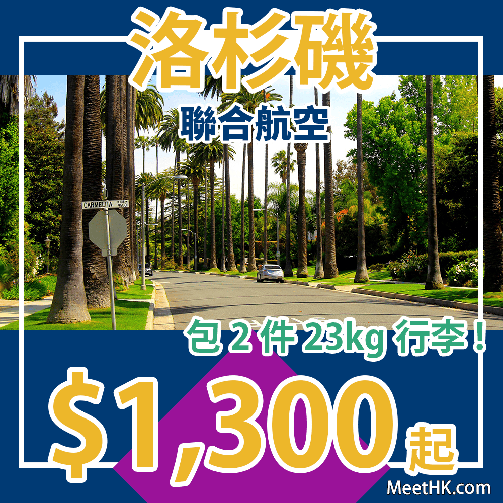 平飛洛杉磯!連稅三千一起!包2件23kg行李!香港往返洛杉磯只需$1,300起 – 聯合航空 (優惠至7月31日)