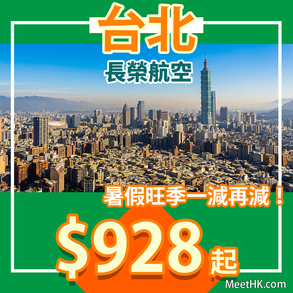 抵!一減再減!暑假旺季長榮飛台北!連稅千六蚊!靚時間早去晚返!香港往返台北只需$928起 – 長榮航空 (優惠至7月20日)