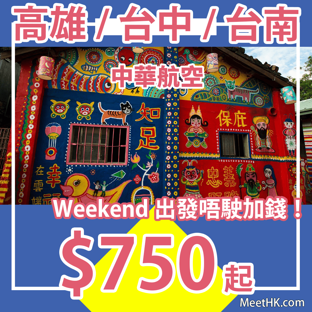 華航官網限定優惠!Weekend出發唔駛加錢!可Open Jaw!香港往返高雄/台中/台南$750起 – 中華航空 (優惠至7月23日)