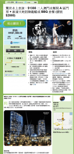 驚世水上表演:$1388 二人澳門水舞間 A 區門票 + 新濠天地招牌龍蝦或 BBQ 套餐 (價值 $2880) – GROUPON (至8月28日11:59pm)